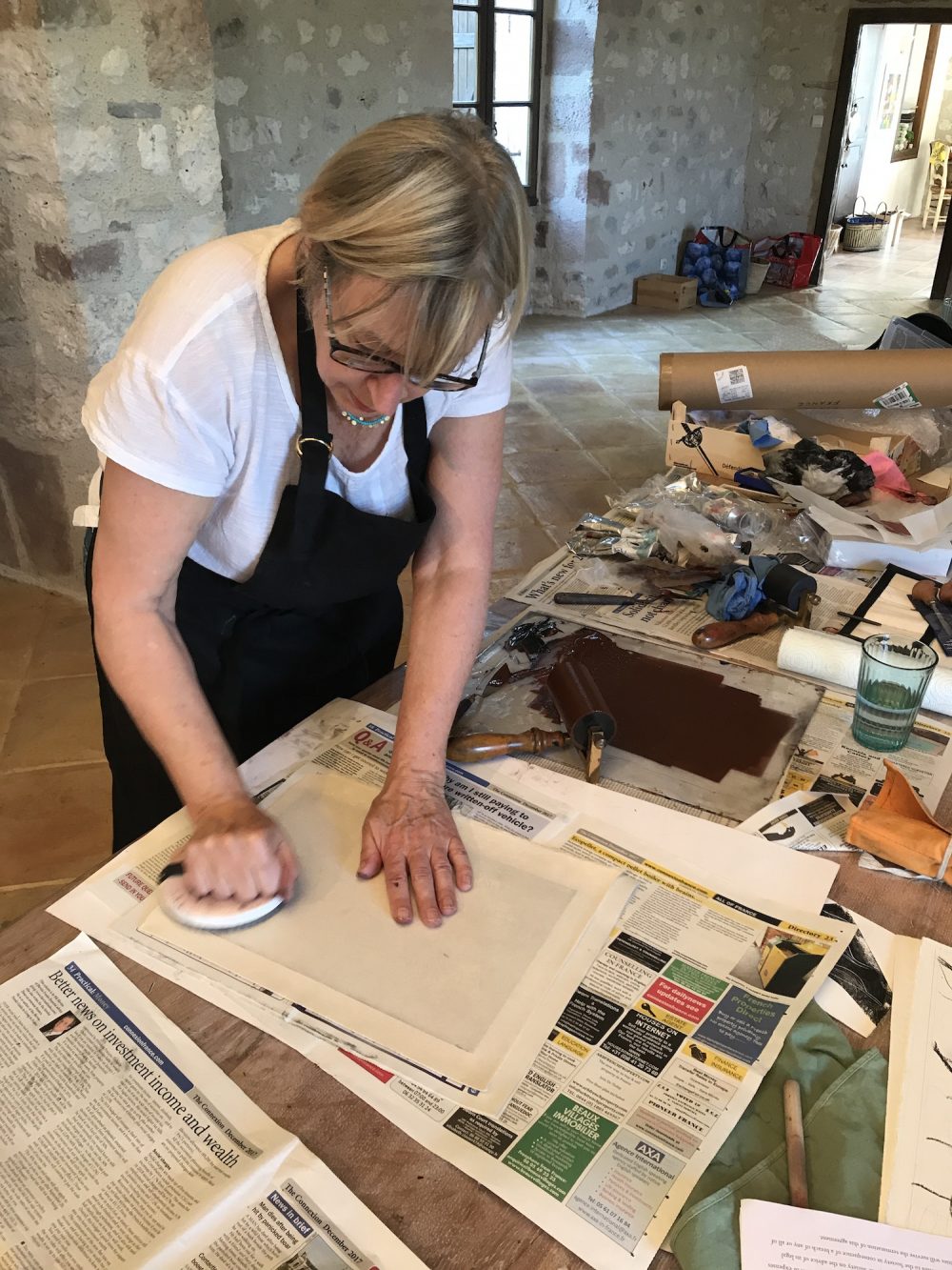 Eileen’s process of drawing and printing to create each unique collage.