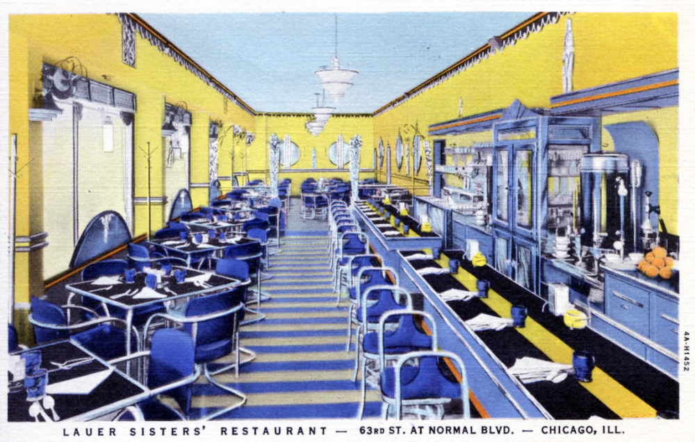 Postcards of the famous Lauer Sisters' Restaurant in Chicago